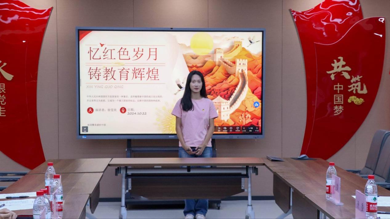 为深入宣传贯彻全国教育大会精神,弘扬革命传统,传承红色基因,激发学生的爱国情怀和奋斗精神,结合校党委工作安排,商学院党总支于10月22日在商学院党员活动室开展“忆红色岁月,铸教育辉煌”演讲比赛。出席本次比赛的有商学院(国际学院)党总支书记、院长赵坤,党总支副书记徐宜慧,教学副院长殷永生,及商学院党总支和各支部委员、师生党员代表。