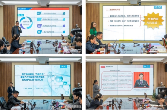 本次参与结题验收的项目共4项,会议采用汇报答辩的方式进行,每个项目汇报15分钟,专家质询15分钟。各项目负责人分别从项目研究内容、任务完成情况、改革成效、特色及创新点等方面依次进行了汇报。在汇报过程中,项目团队成员们不仅展示了教学改革在教学方法、课程体系、人才培养模式等方面的创新举措,还分享了在项目推进过程中所遇到的困难与挑战,以及如何通过团队协作、专家指导和不断实践探索加以克服的宝贵经验。