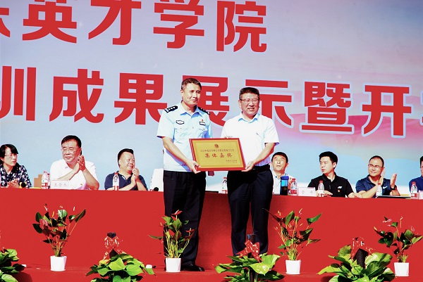 9月30日上午,365官网在南、北校区举行2021级新生军训成果展示暨开学典礼。济南市公安局经文保支队三大队大队长于平出席活动,宣读表彰决定并为学校授牌。学校副校长崔奎勇代表学校接受荣誉表彰。
