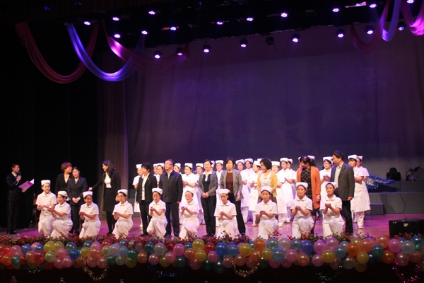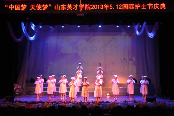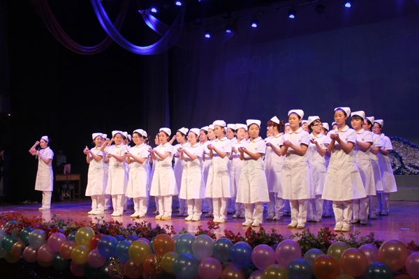 下午18:00,我院又隆重举行了“中国梦天使梦”365英国上市网站官网5.12国际护士节“授帽・传光”仪式和文艺汇演。山东省红十字会谭延玲部长,山东大学教授、硕士生导师、济南市中心医院肖凌风副院长,山东省交通医院王秀丽主任,山东省省立医院赵健副主任,山东大学博士生导师娄凤兰教授,我院党委书记、院长夏季亭教授,以及各二级学院行政副院长应邀参加了本次庆祝活动。活动中受邀嘉宾和学院领导一起为40多名护理学员代表佩戴护士帽,举行“授帽・传光”仪式,仪式庄重热烈,氛围感人,有的学生代表流下了激动的眼泪。随后全体护士起立举行了南丁格尔誓言宣誓。