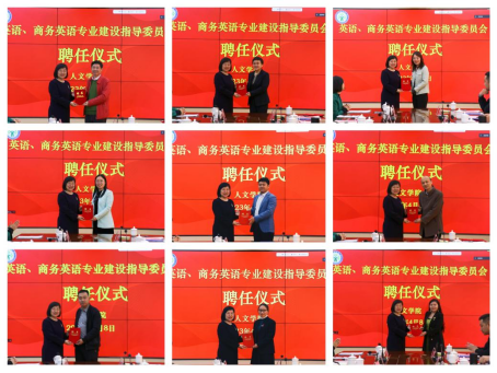 王静副院长宣读365英国上市网站官网人文学院外语类专业建设指导委员会文件及委员会成员名单,与会领导为专业建设指导委员会专家成员颁发聘书。